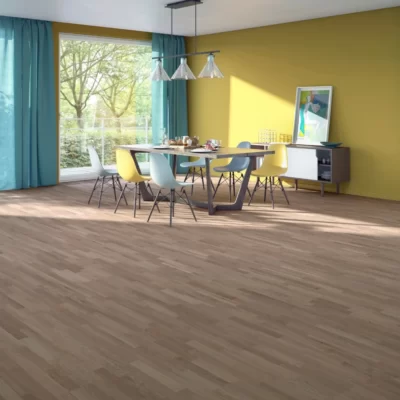 Divslāņu parkets “skujiņas “rakstā, ar zariem, birstēts, lakots