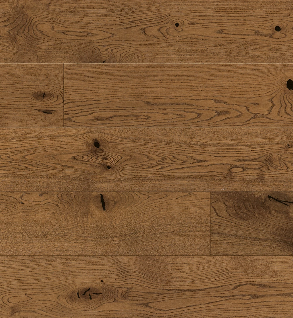 3-slāņu parkets no ozola, vienjoslu dēlis, matēti lakots, birstēts.